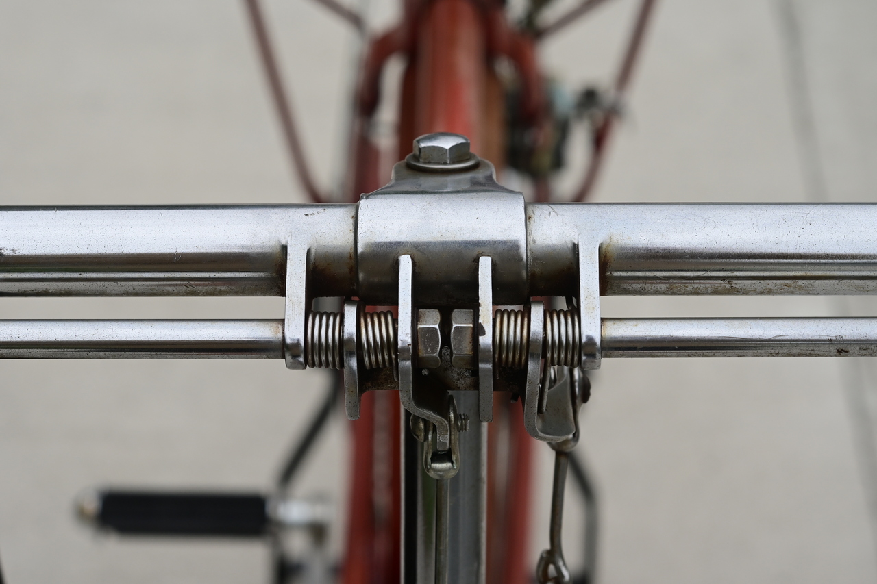(特徴的な 右ブレーキだけで両方効かせる 片手前後ブレーキ仕様のニットーのハンドルです)